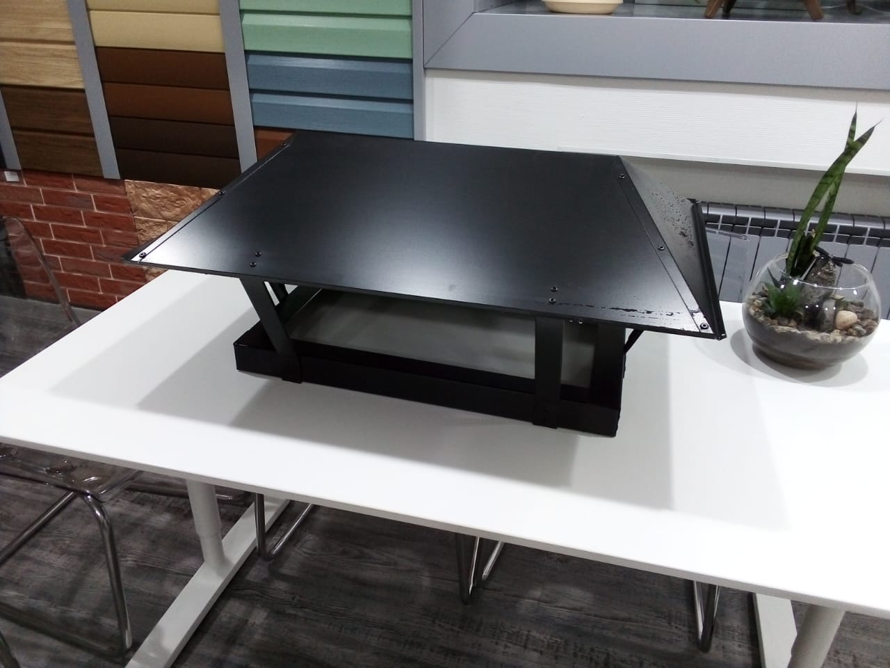 - -Защищает кирпичную трубу от разрушения из-за воздействия осадков. Для этого колпак оснащают канавками для отведения конденсата, образующегося на поверхности металла из-за контакта с горячим дымом или воздухом, если дымник установлен на вентканал.