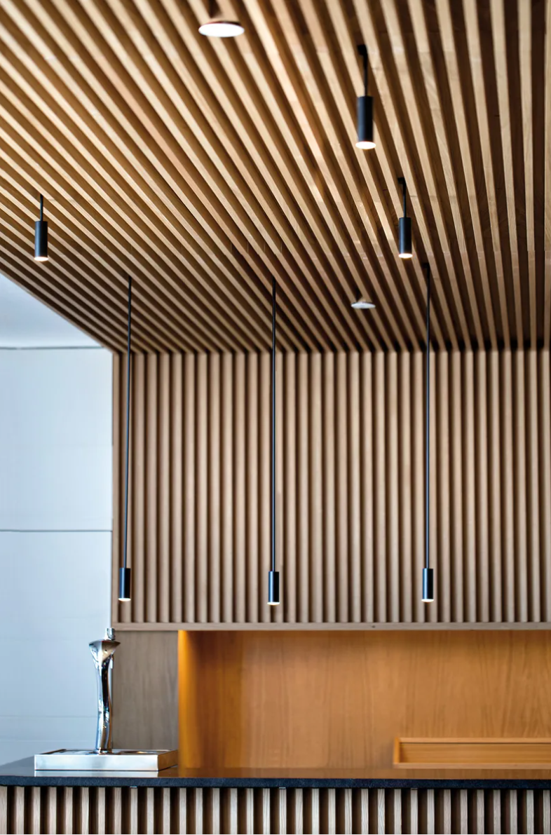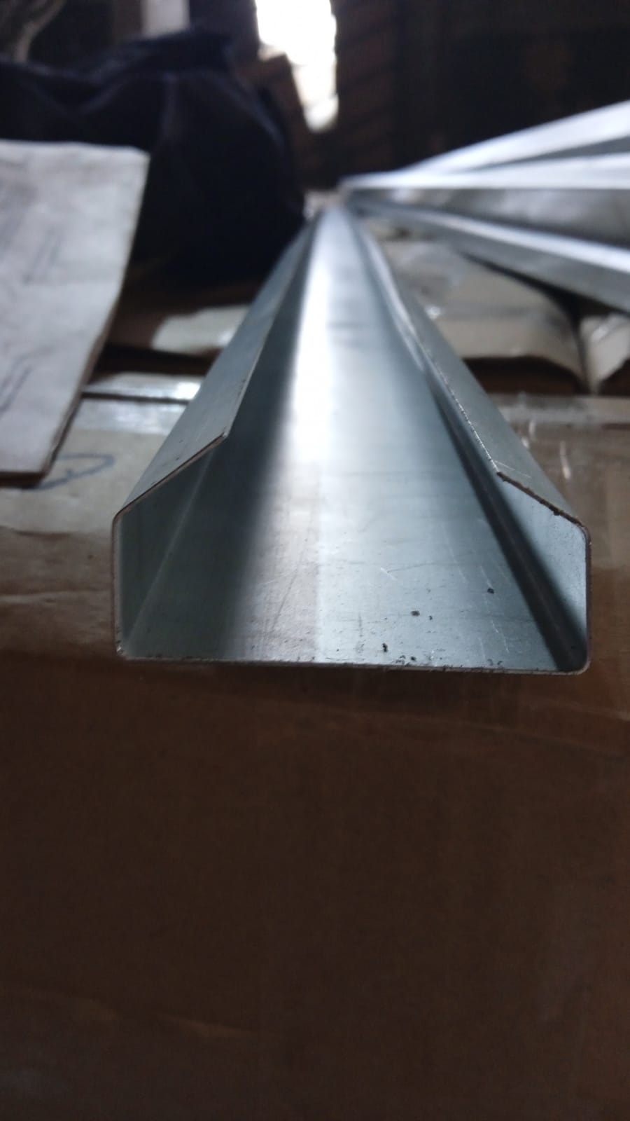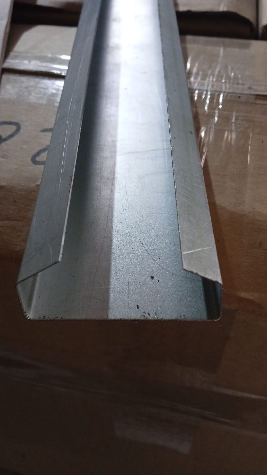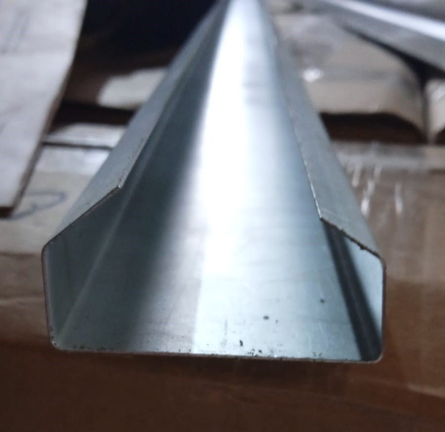 Ответная планка изготавливается из оц. металла толщиной 0,45мм-0,7мм. Крепится на подсистему или непосредственно на стену саморезами, заклёпками или дюбелями. Как правило ответную планку режут по 500мм и размещают с шагом 500мм. Чтобы одеть кубовую рейку на ответную планку, стенки рейки отгибают, и защёлкивают на ответной, усики попадают между стеной(профилем) и планкой в натяг.